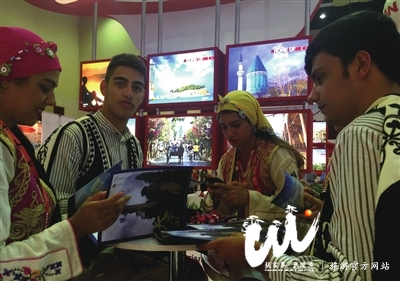 张家界促销团在马来西亚展会现场向参展商发放宣传资料